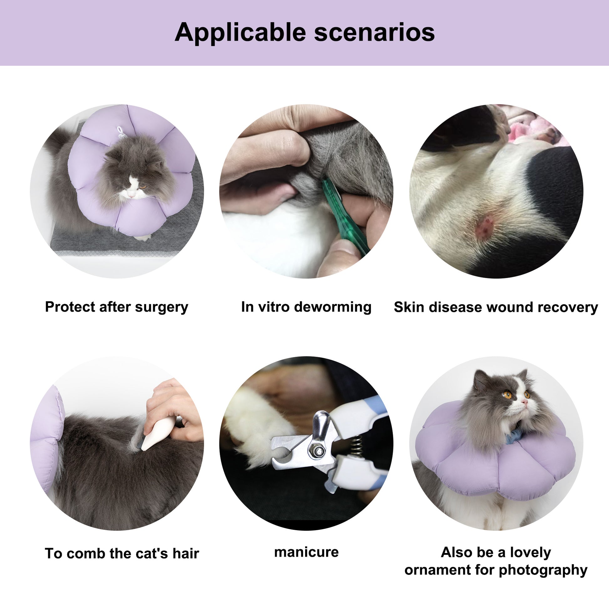 - It can prevent pets from licking and scratching their wounds, so that pets recover better after surgery. At the same time, it is also suitable for external deworming, wound healing of skin diseases, nail trimming, cat hair combing, etc.