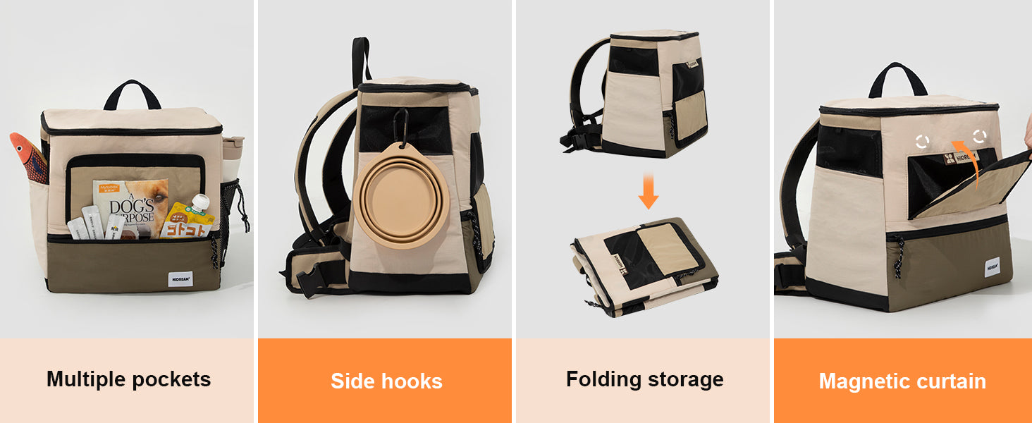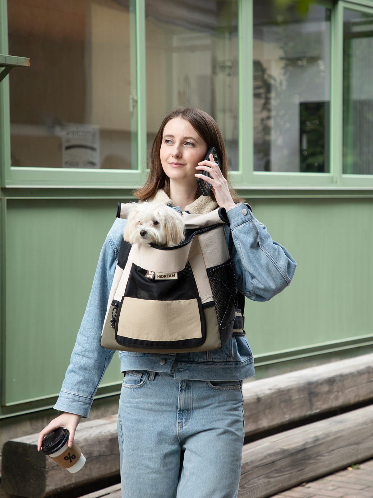 - CONVENIENT TRAVEL Dog backpack carrier for small dogs is equipped with pockets for carrying personal belongings,such as mobile phones, credit cards, etc. The dog carrier backpack is made of soft material and can be folded for easy carrying during travel. The front bag design makes it more load-bearing and less prone to lumbar fatigue when carrying a dog. At the same time, dog chest carrier can liberate the owner's hands and make travel more convenient.