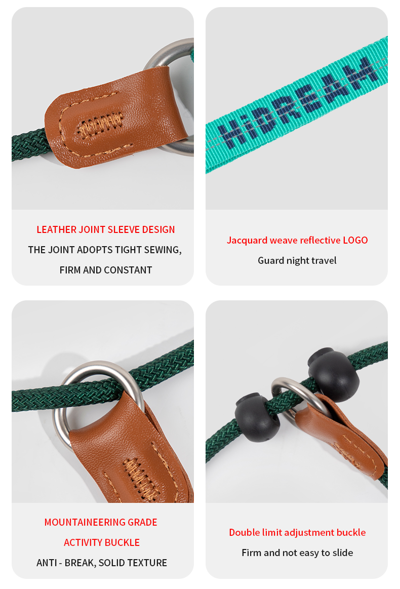 Explosion-proof Punch P Rope:Crafted with a durable explosion-proof punch P rope, this leash withstands up to 150kg tension for secure control.
