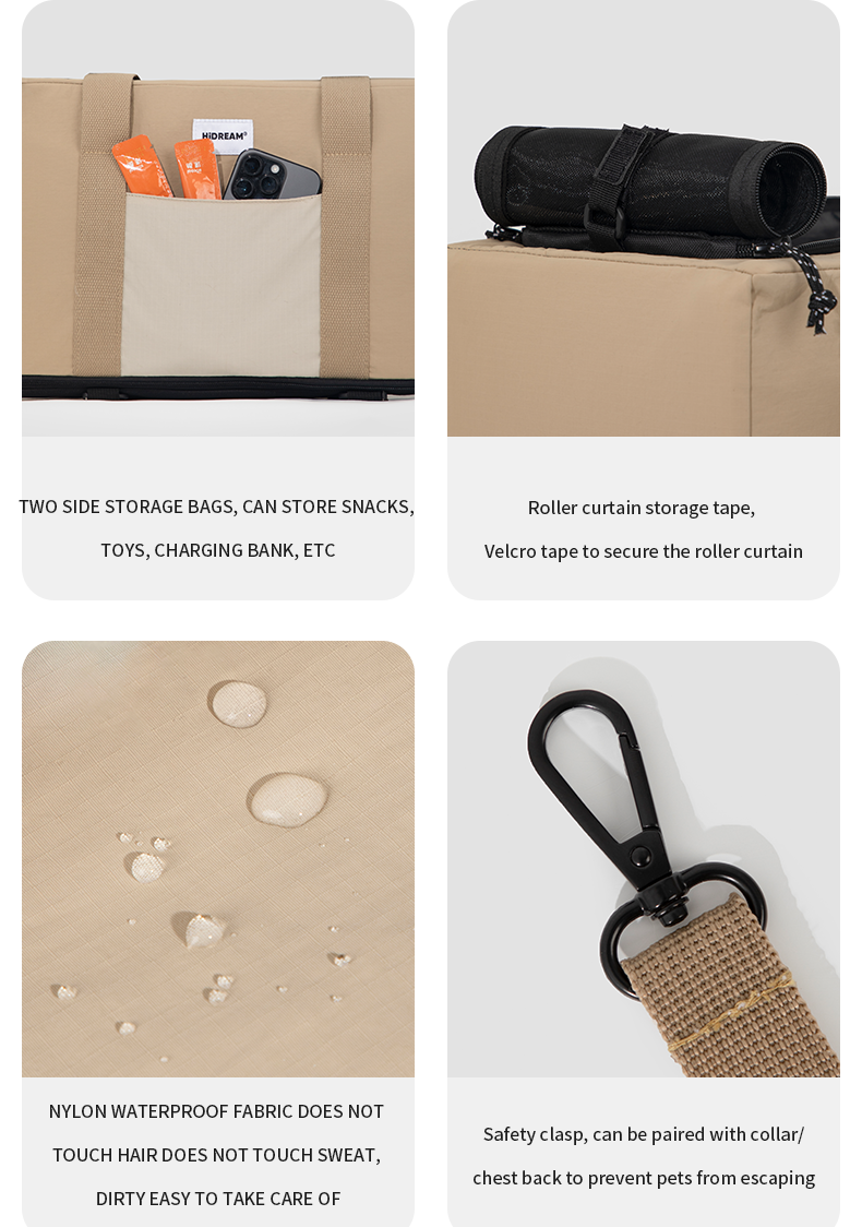 5. Adjustable small pillow security UP, PP cotton filling, the front pillow can be put down, not blocking the line of sight to facilitate the pet to see the scenery and facilitate the pet to enter freely