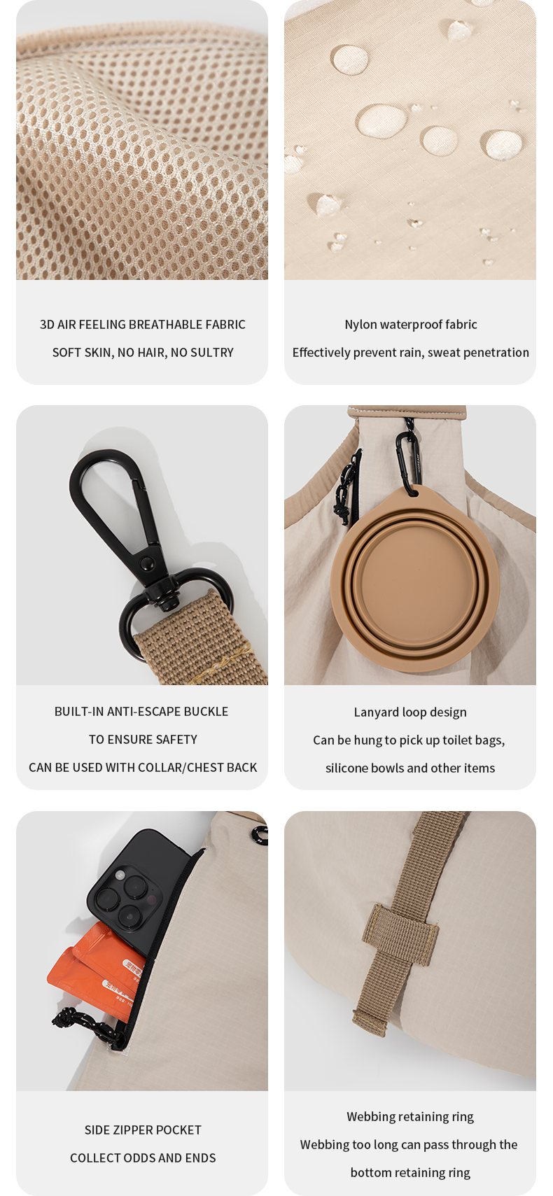 More secure crossbody bag: The bag has a dog collar that can be attached to a safety buckle to prevent your dog from escaping.